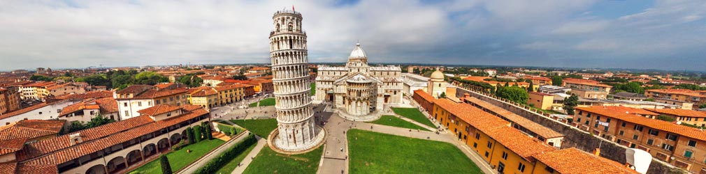 Le Dôme (il Duomo) se situe devant la tour et il est considéré comme la plus grande expression de l’art roman de Pise. Il s’agit d’une merveilleuse fusion d’éléments classiques, byzantins, arabes et nordiques. Sa construction débute en 1064 par Buscheto et se termine au XII siècle par Rainaldo. Sa façade de calcaire blanc s’articule en un ordre inférieur en arc et en quatre ordres supérieurs de logettes, enrichies de sculptures et de marqueteries. Sur ses portes en bronze du XVII siècle sont gravées en relief les histoires de la Vierge et du Christ. A l’intérieur du Dôme, composé de cinq nefs, se trouve une magnifique coupole ellipsoïdale. On peut également y admirer des œuvres de grande valeur comme par exemple les peintures de Beccafumi, de Ghirlandaio, d’Andrea Del Sarto et de Sodoma, le mosaïque absidal de Cimabue, l’autel de Giambologna ainsi que le parchemin de Giovanni Pisano, chef-d’œuvre de l’art gothique italien. Enfin, vous pourrez voir le Lampadaire deo di Galileo Galilei, qui fut utilisé par l’illustre scientifique pour ses importantes expériences sur les lois de la physique.